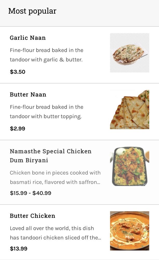 With a casual vibe, friendly service, and a variety of dining options, including takeout and delivery, Namasthe Indian Restaurant promises a memorable experience for families and groups. Join us for an incredible culinary journey!
